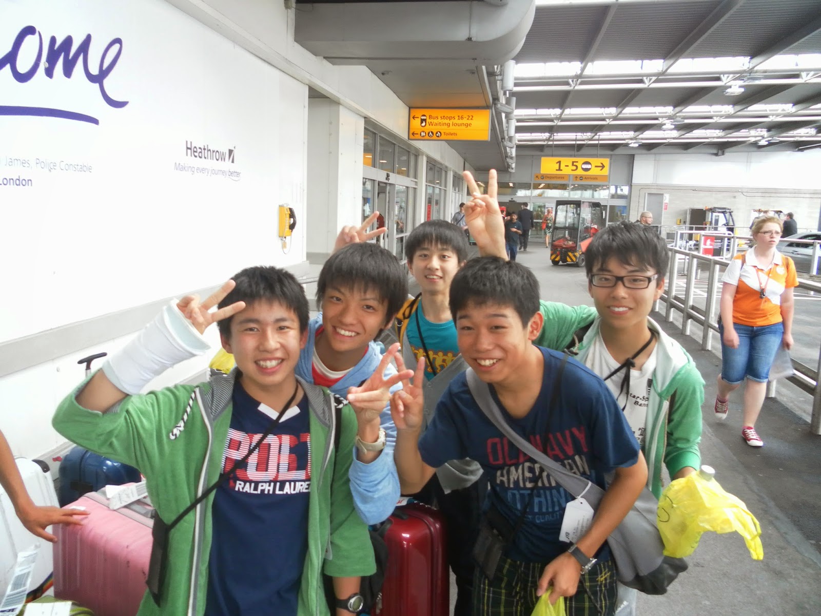 The boys are all now safe in heir new homes after their long journey. They must be very tired but they kept smiling all the time and made a great first impression on everybody. Here they are at Heathrow before heading to Marlborough on the bus. Many thanks to Mr. Bond for getting them to England safely.